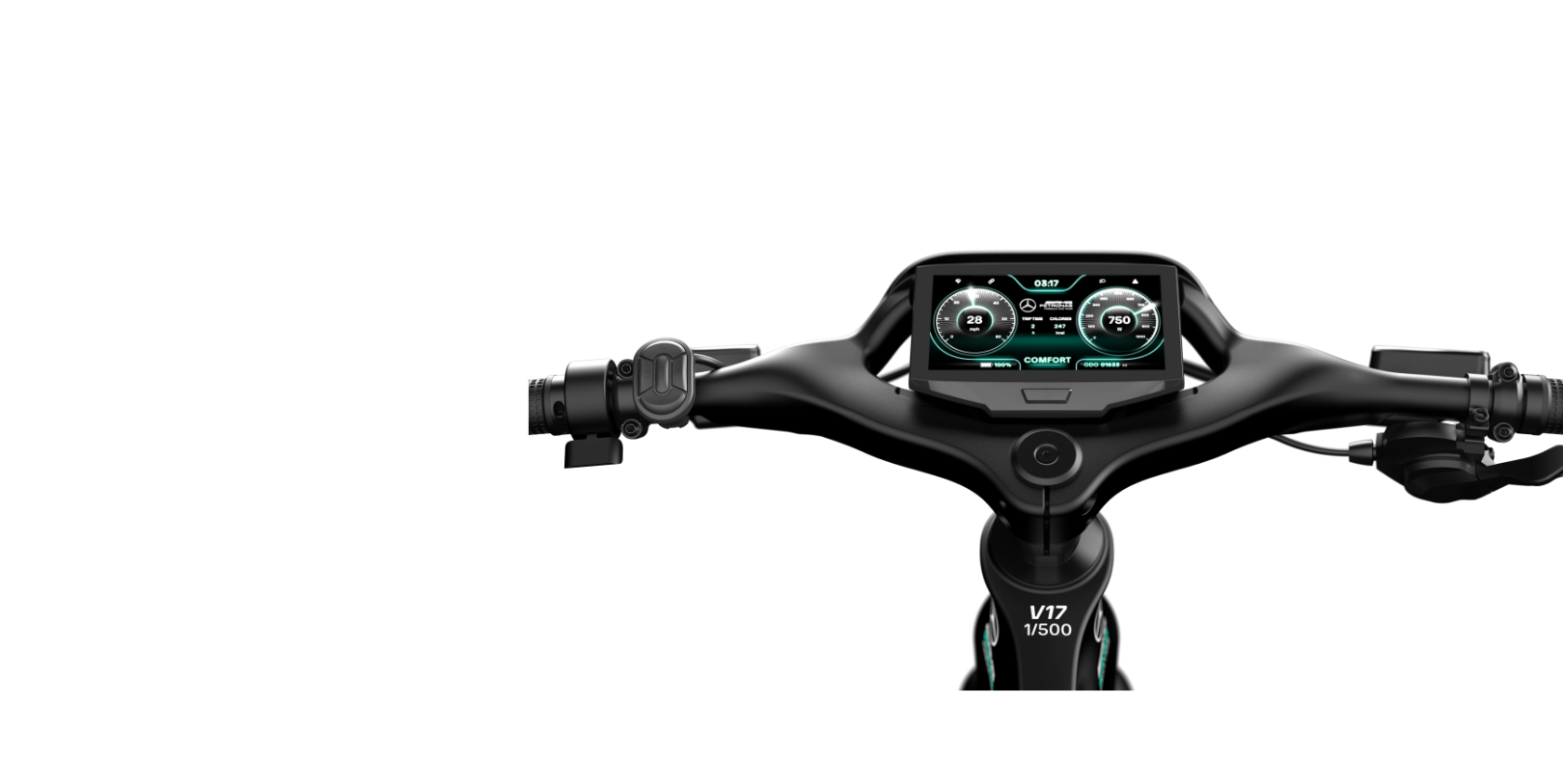 Custom one-piece handlebar with 5.5" full-color display